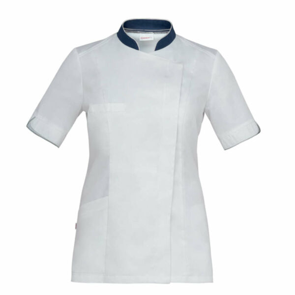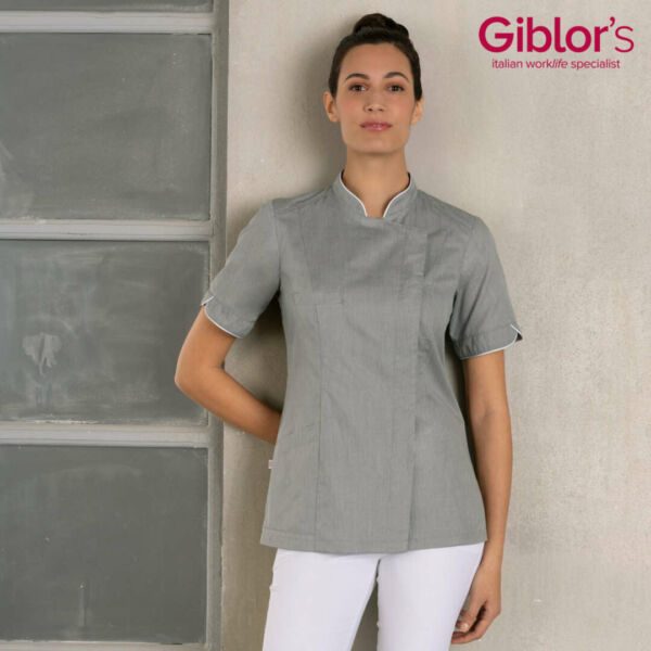 È realizzata in leggero tessuto poliestere cotone 113 g. Un tessuto Easycare: perfetto per chi vuole essere sempre impeccabile. È un capo trasversale, dalle spa agli studi medici ai servizi: la sua linea lo rende adatto ad esprimersi al meglio in ogni ambiente.