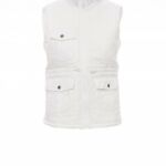 Gilet in alta visibilità con bande 3M, chiusura frontale con zip, due tasche frontali modello canguro con patta di chiusura lock system e velcro, una tasche al petto con zip.
