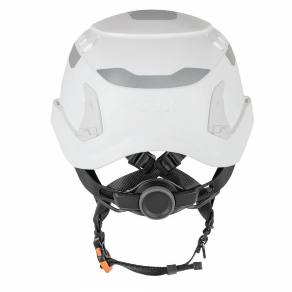 Cinturino sottogola con 5 punti di regolazione per personalizzare la vestibilità. Si adatta a circonferenze della testa più larghe e all’utilizzo di cuffie antirumore. Il colore della fibbia indica il grado di conformità agli standard EN.
