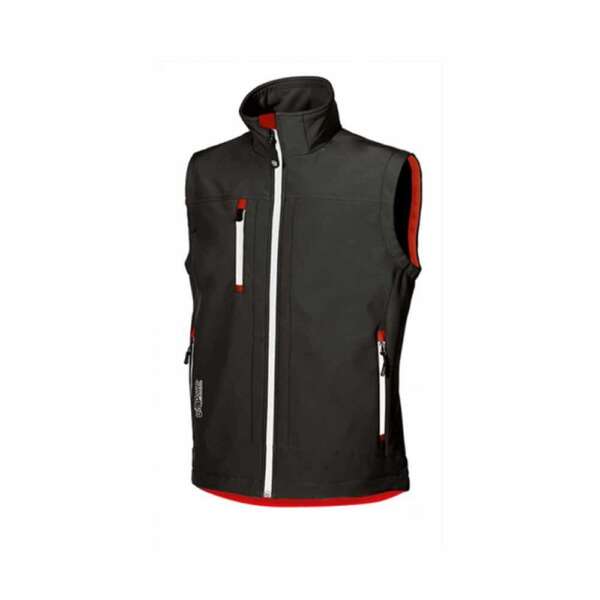 Gilet da lavoro in tessuto Soft Shell stretch traspirante antivento e idrorepellente.