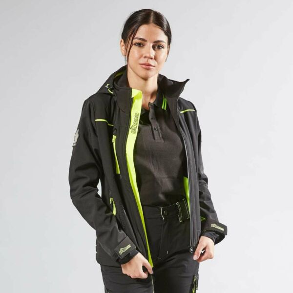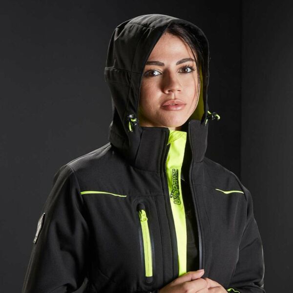 Giacca in Softshell con membrana U-Tex che rende il tessuto impermeabile, traspirante e antivento. Giacca molto comoda e resistente con una fodera interna in morbido micro-fleece fluo. Chiusura centrale con zip impermeabile. Maniche preformate per vestibilità ottimale, cappuccio regolabile e staccabile, polsini regolabili con velcro e polsino antivento elasticizzato con foro passa-pollice. Dotato di due tasche frontali chiuse con zip fluo e coulisse antimpigliamento regolabile all’interno. Una tasca porta cellulare sul petto con tecnologia Free Sound chiusa con zip fluo. Due ampie tasche interne. Tasca supplementare termosaldata su manica sinistra. Fondo sagomato. Nastro reflex su colletto nella parte posteriore. Logo U-Power tono su tono.